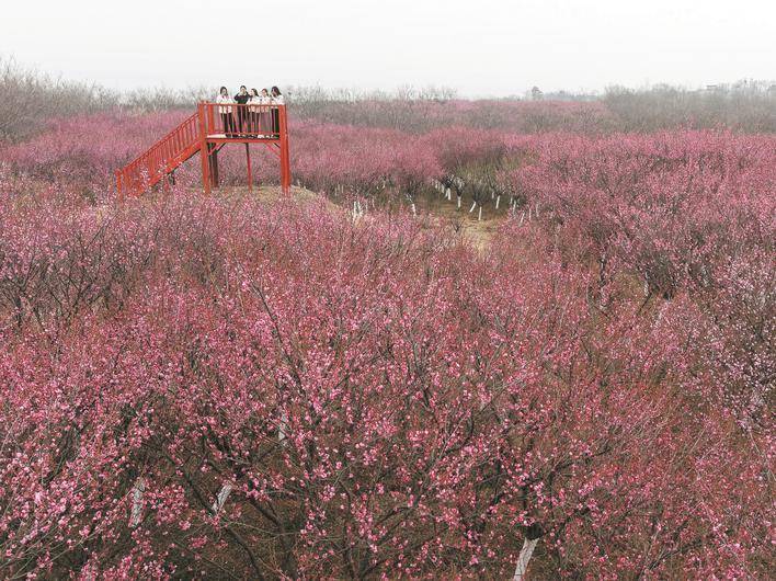巢湖市庙岗镇清水湾梅花园的千亩梅花次第绽放。